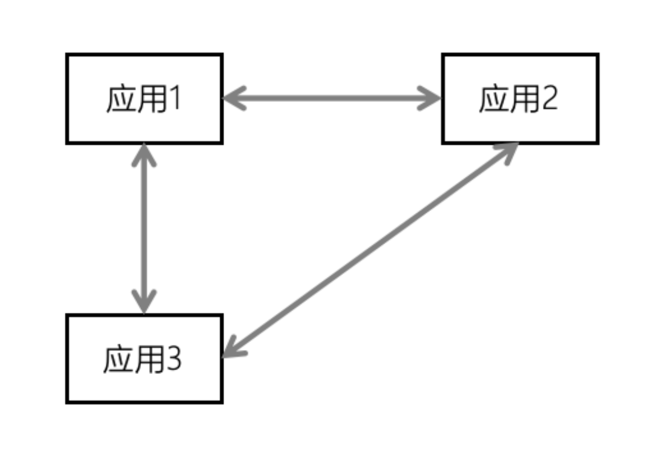 点到点模型是最直接、简单的集成方式。它通过在需要通信的两个应用系统之间建立独立的、专用的通道来实现数据传递,如下图所示。