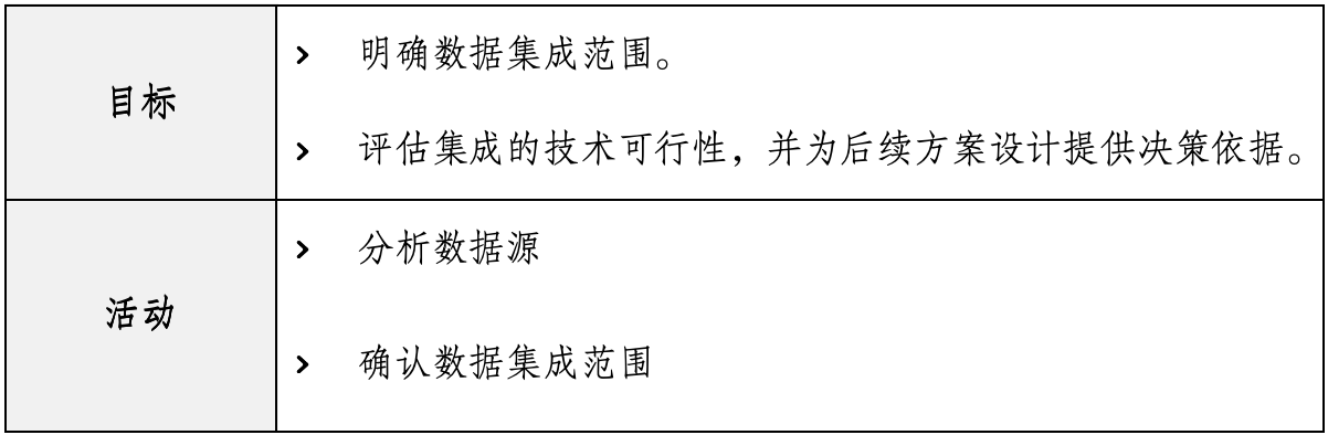 在业务调研基础上,明确数据集成需要支撑的数据管理和业务目标,确定集成的主题域(如客户、订单信息等),即解决“集成什么”的问题。