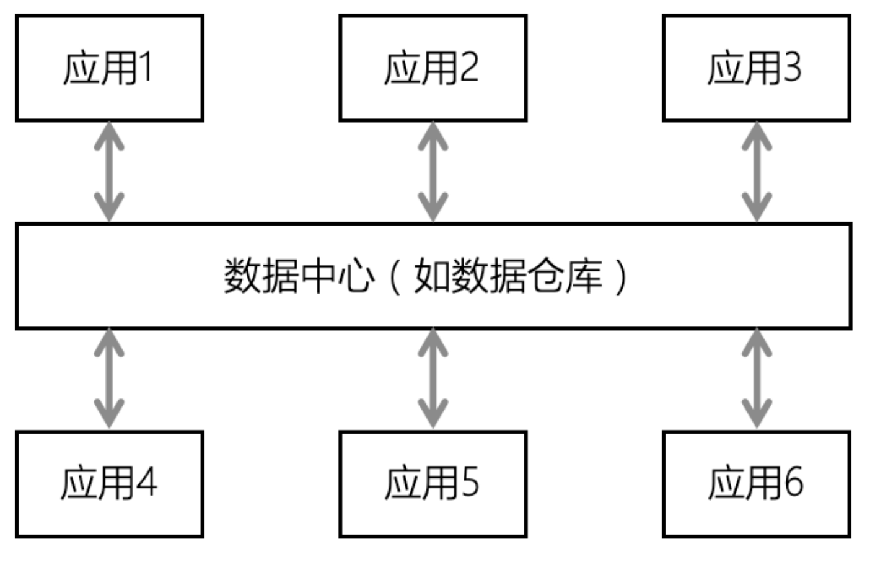 中心辐射型模型通过引入一个中心节点来解耦所有系统之间的直接联系。即它将共享数据(物理或虚拟)整合到应用程序可以使用的一个中央数据中心(如数据仓库)。所有想交换数据的系统都是通过一个中央公共数据控制系统进行交换的,而不是直接与其他系统(点对点)进行交换。