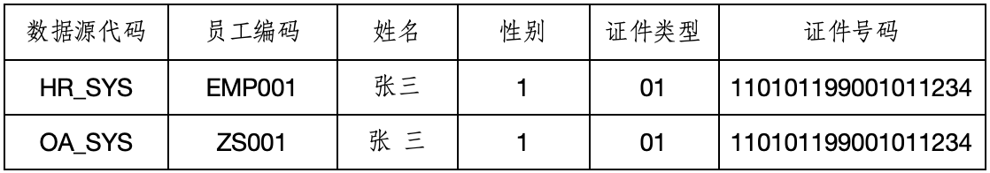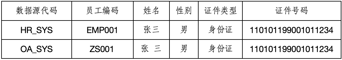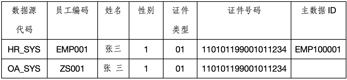 以上述整合后的员工主数据为例,标准化后的主数据如下。