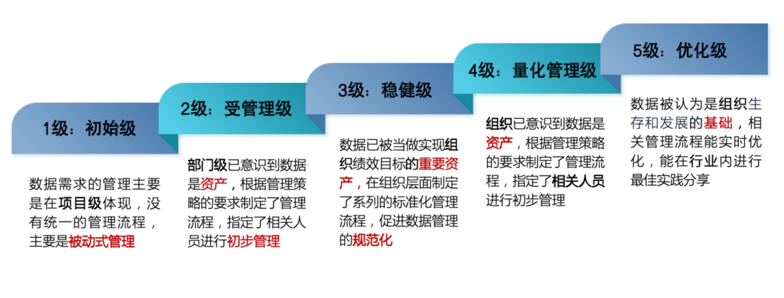 初始级:数据需求的管理主要是在项目级体现,没有统一的管理流程,主要是被动式管理。