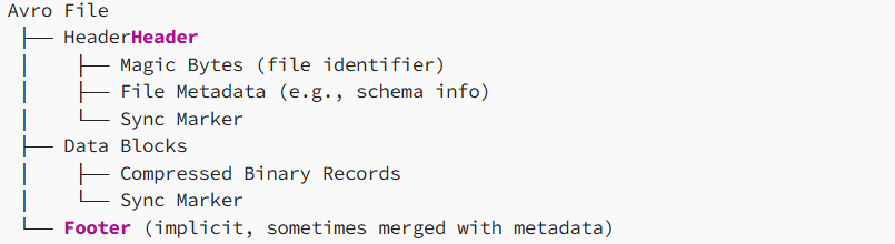 Avro 也像 Parquet 一样提供模式强制执行,这意味着模式存储在文件元数据中。