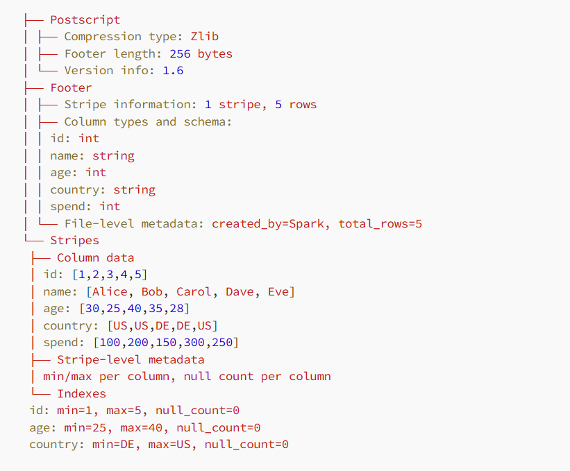 •谓词下推/更快的过滤: ORC 的条带级元数据可以高效地跳过不必要的数据。