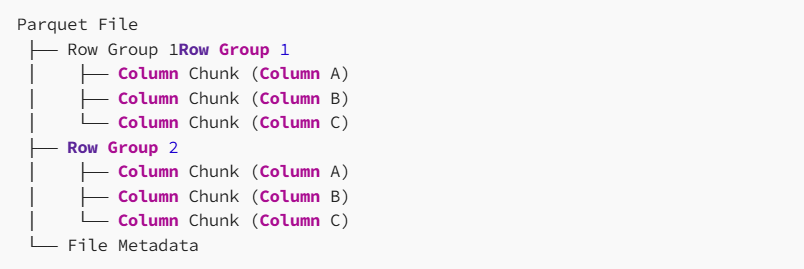 •行组: Parquet 文件的一部分(例如,100 万行一组)。