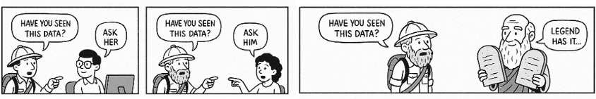 这些问题很少能事先得到解答。团队往往要花费数天甚至数周的时间来追踪未记录的数据集、逆向工程字段,或者等待他人批准访问权限。更糟糕的是,即使找到了数据集,其可用性也依赖于口述历史、个人知识或无法扩展的内部捷径。因此,每个项目的早期阶段都包含大量的“数据考古”工作:这是一项成本高昂且难以追踪的成本,隐藏在项目延误和重复工作背后。