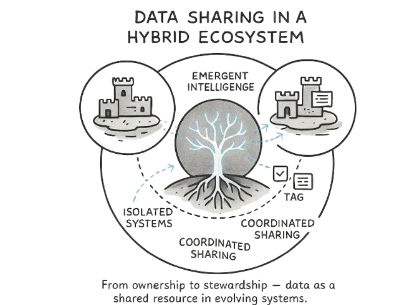 因此,围绕数据共享的技术、流程和文化必须不断发展。它应成为一座桥梁,而非后端支持,连接控制与创造力、治理与应用、人的情境与机器执行。