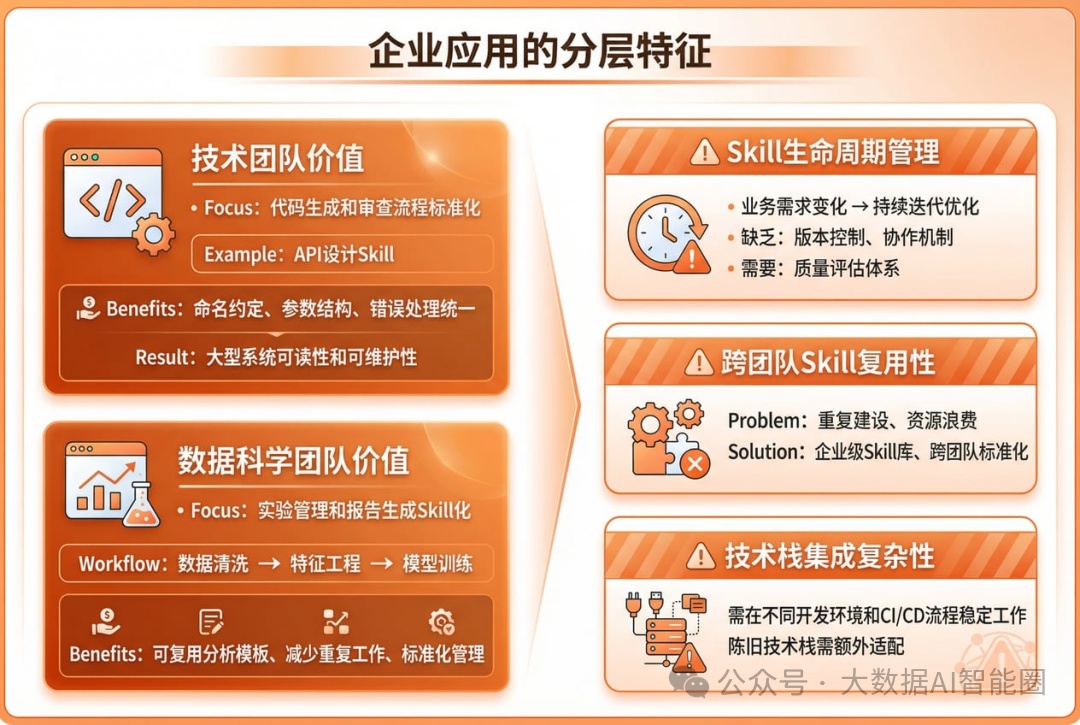 在企业环境中,Claude Skills的实际应用呈现出明显的分层特征。