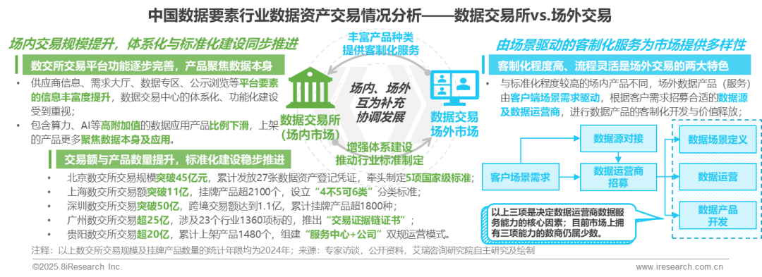 数据市场交易呈现“内冷外热”的分布模式,场内交易的体系化、标准化与场外交易的客制化、灵活度共同推动国内数据资产交易体系的完善