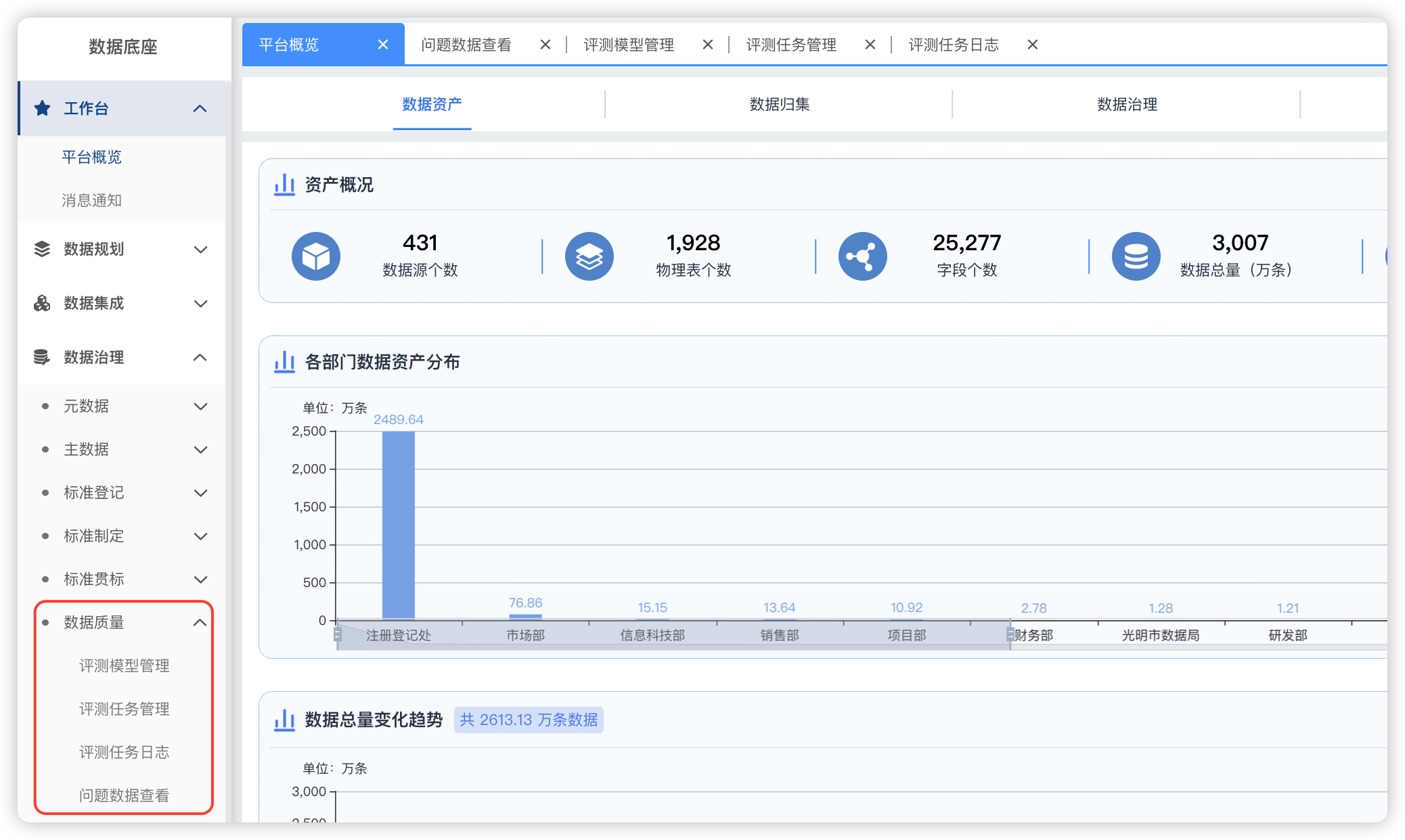 数据治理分析模块新增2大核心功能:「问题数据统计」、「时效性分析报告」模块,助力全面洞察数据质量状况,为决策提供数据支撑。