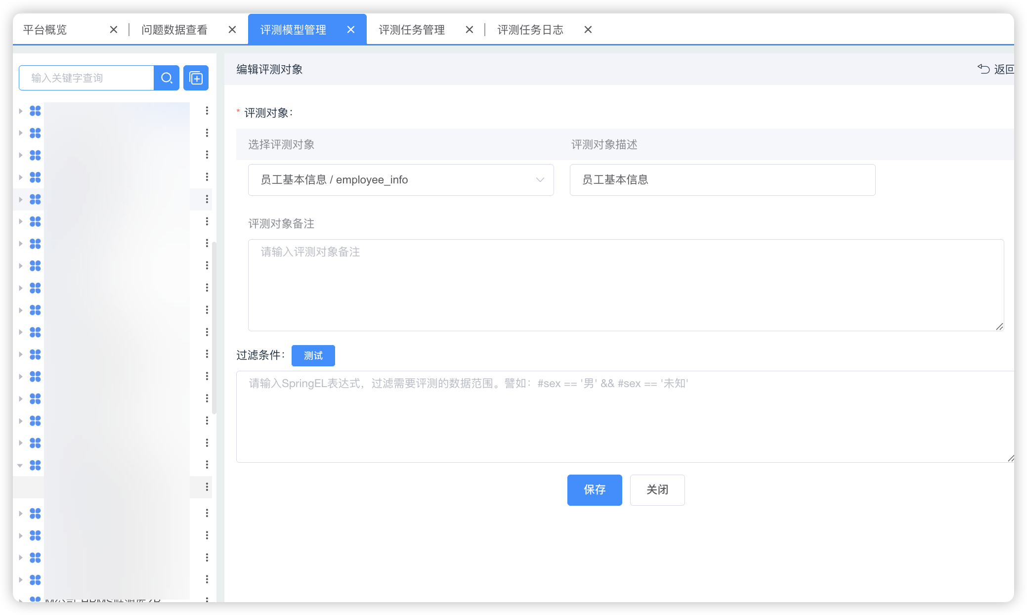 - 评测对象管理:新增评测对象时,取消物理表来源部门的校验,无需关联来源部门即可完成添加。