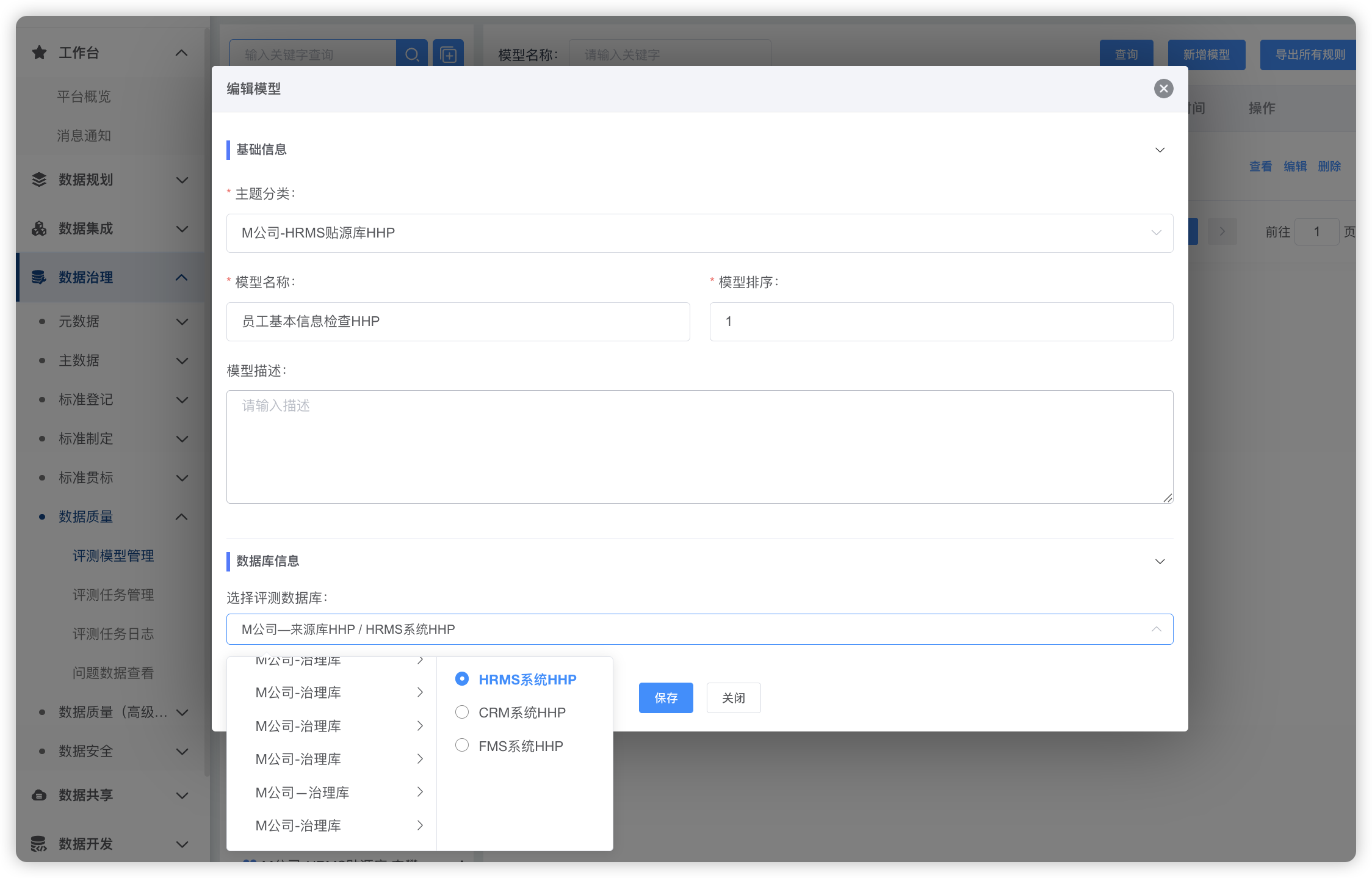 - 数据源选择:仅显示质量模块支持的数据源类型,并优化为多层级选择样式。