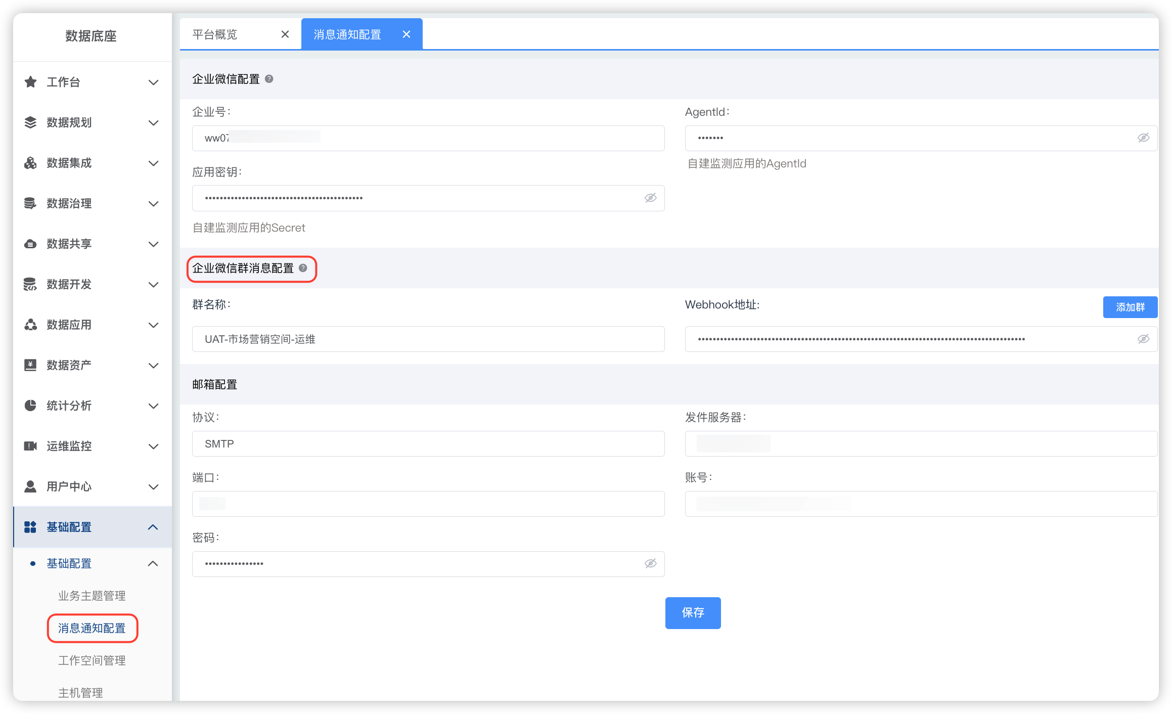 - 扩展预警渠道:在数据归集监控、数据清洗监控、数据共享监控模块中,增加企业群消息预警功能,实现异常信息及时同步。