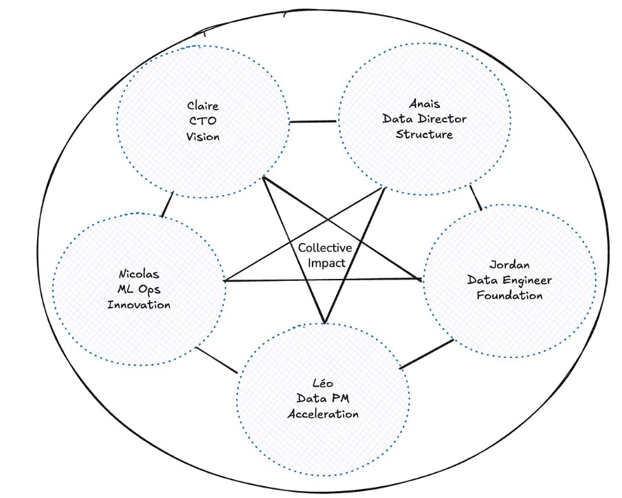 这个团队之所以能够蓬勃发展,是因为他们能够本能地划分角色,并充分发挥彼此的优势。克莱尔定义了“为什么”,阿奈斯构建了“如何做”,尼古拉斯证明了“这是可能的”,乔丹构建了“可扩展性”,而我则确保了“推广”。