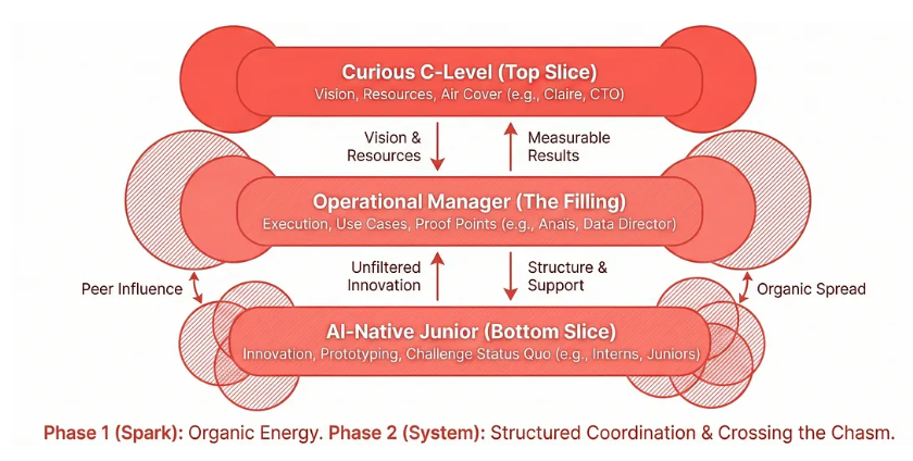 自下而上的创新使我们达到了55%的转化率。要达到90%,我们需要自上而下的赋能。不是控制,而是协调;不是强制,而是系统性的支持。