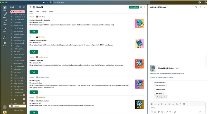 在 Malt,以前要找到某个具体的法律政策或产品详情,就像考古挖掘一样,得花上十分钟,翻遍 Notion 页面、Confluence 文档,还要翻遍埋没在 Slack 讨论串里的帖子。